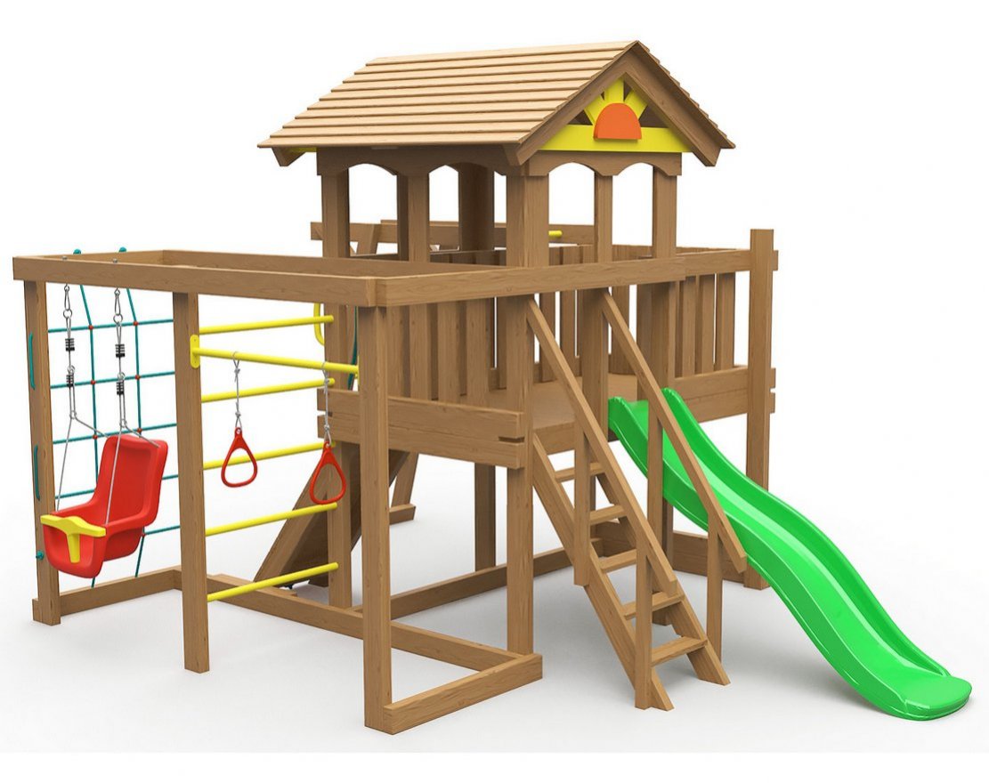 Все материалы, использованные при изготовлении городка, безопасны и сертифицированы. Древесина — из хвойных пород и прошла камерную сушку. Грунт-пропитку защитно-декорирующую «GALAMIX» также произвели в России. HDPE пластик — из Польши или России.