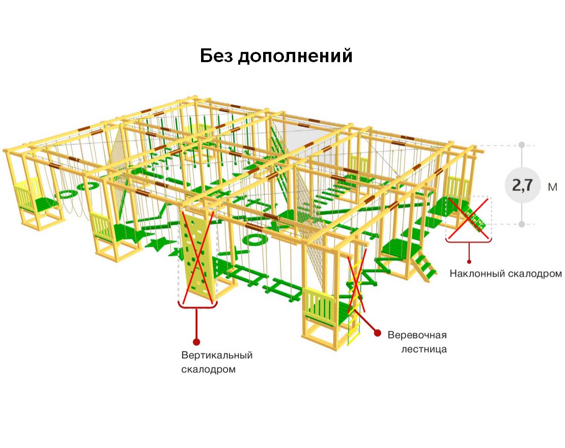 Верёвочный городок — это отличный выбор для детских площадок, парков и других общественных мест. Городок быстро устанавливается и не требует сложного обслуживания.