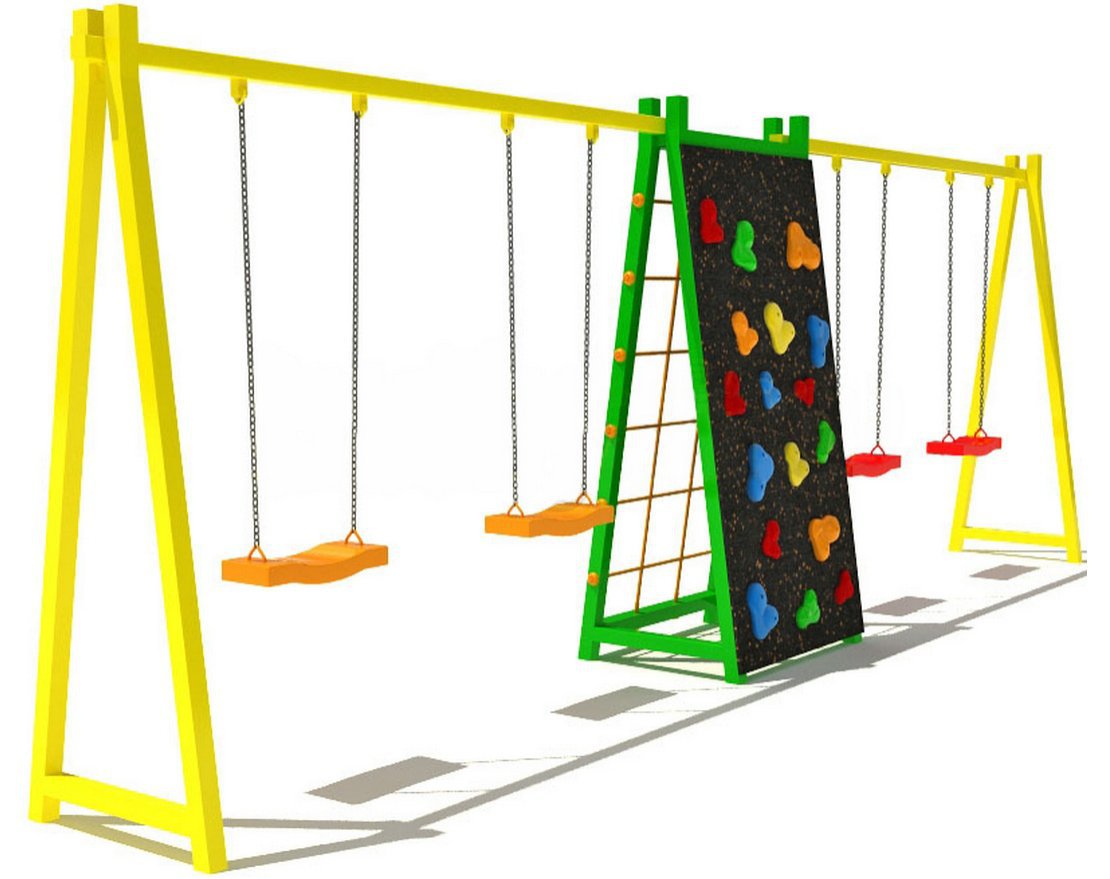 Спортивно-игровой комплекс с качелями с первого мгновения приковывает восхищенные взгляды детей, обещая им самые захватывающие и невероятные развлечения. Сразу четыре качели, дополненные стенкой для скалолазания и лесенкой-клеточкой – это настоящий детский рай, позволяющий всласть резвиться, тратить энергию и гармонично развиваться физически.