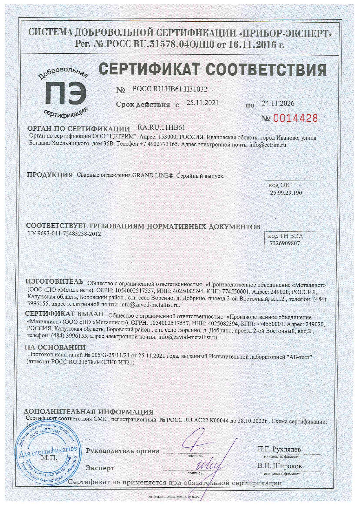 Заполнение: панель без ребер жесткости, выполненная из стального оцинкованного прутка диаметром 3 мм.