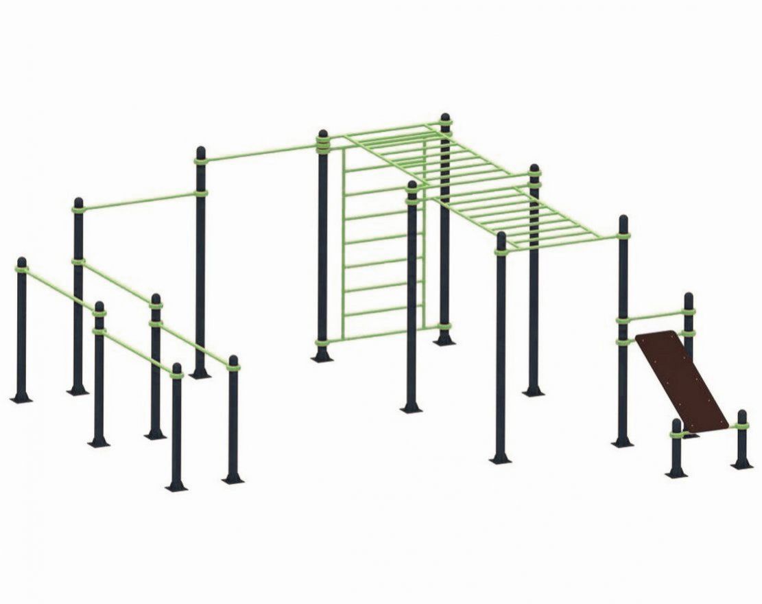 Элементы комплекса регулируются по высоте благодаря хомутам, что позволяет настроить их под рост пользователя. Также возможно менять расположение элементов воркаут в плане за счёт применения круглых труб, что расширяет возможности для тренировок.