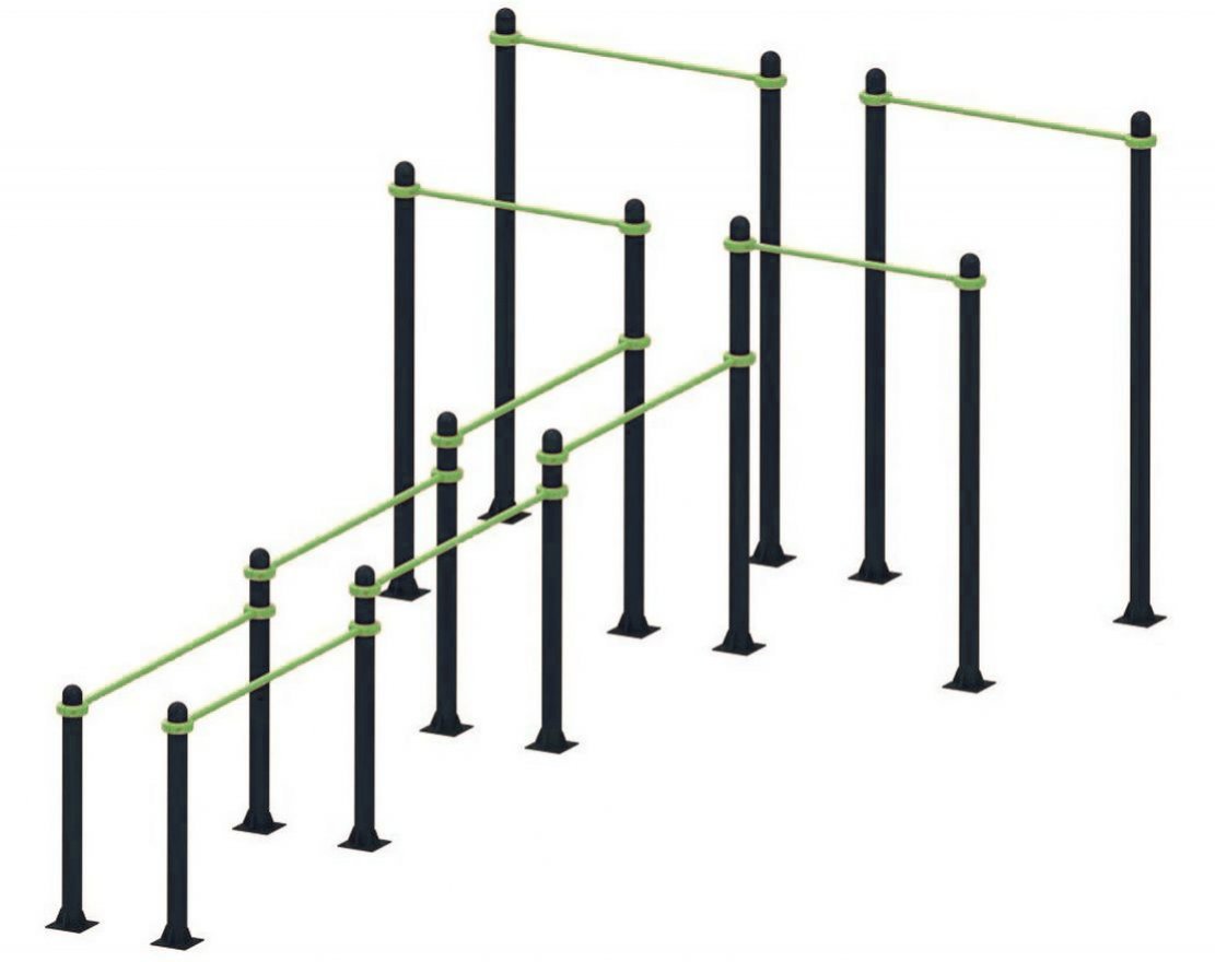 Многофункциональный тренажёр объединяет разноуровневые брусья и турники. Помогает развивать различные группы мышц и поддерживать физическую форму.