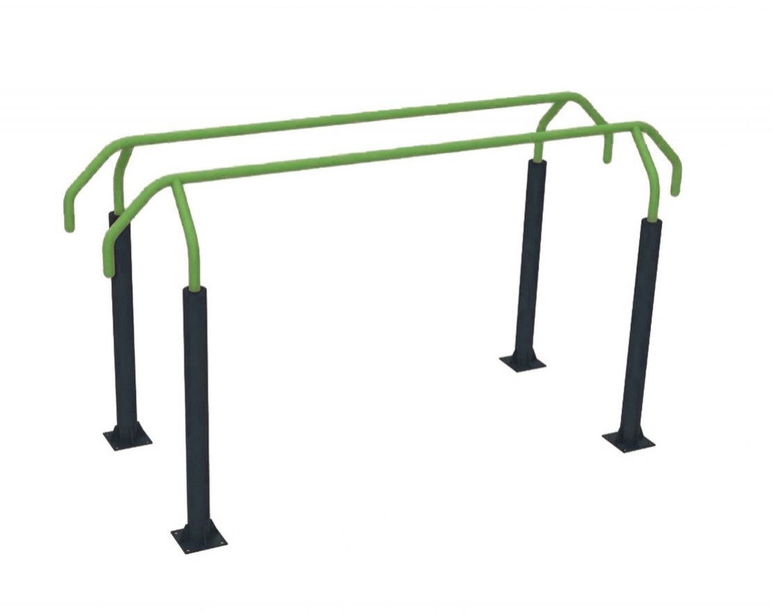 Брусья изготовлены из прочной стали и рассчитаны на одного-двух тренирующихся.