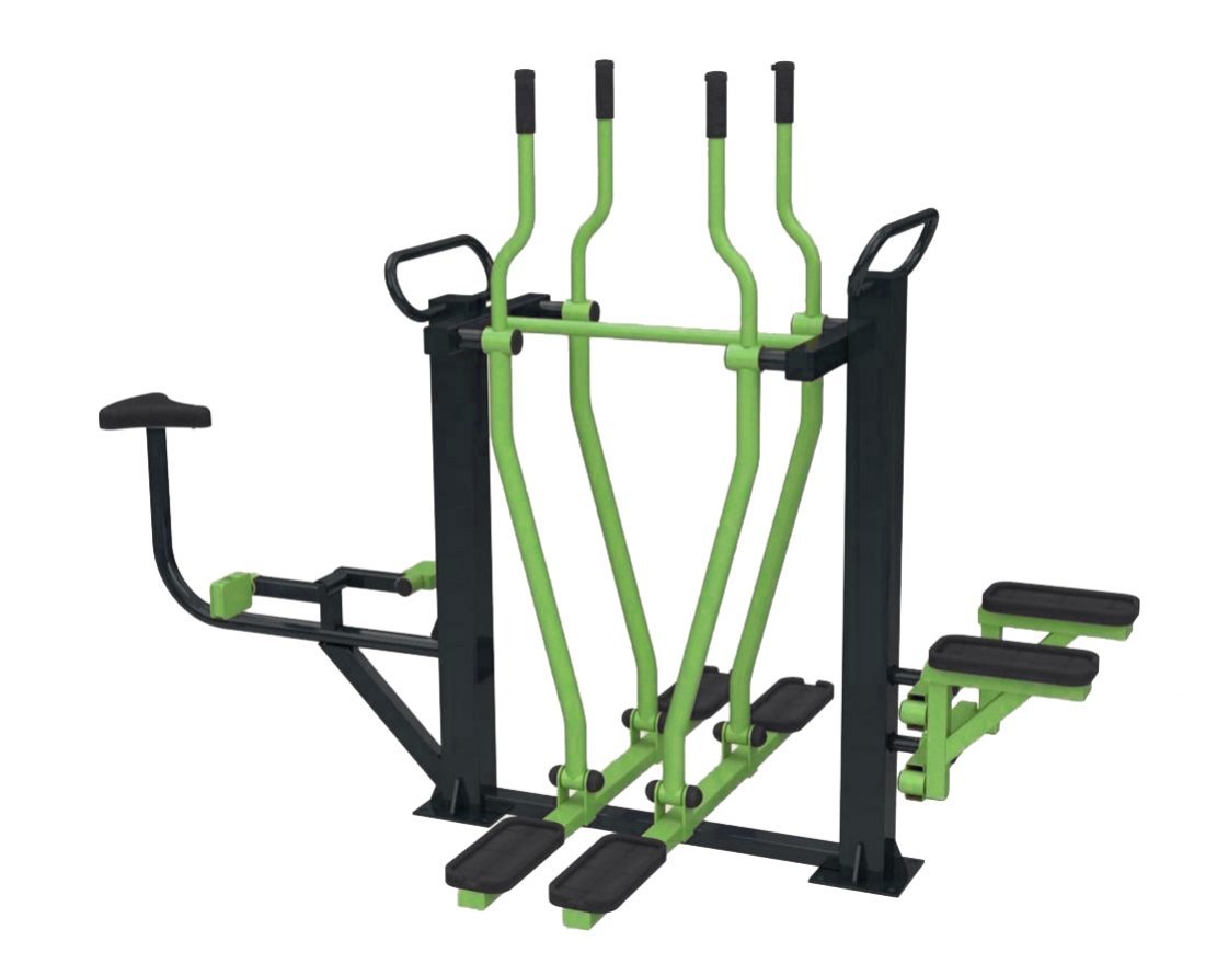 Уличный тренажёр «Лыжники+Велосипед+Степпер» — это комплекс из трёх элементов.