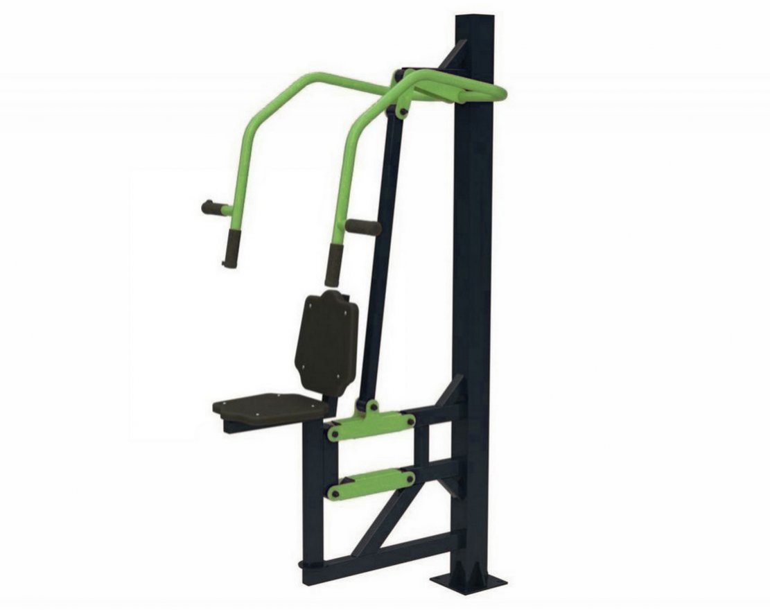Уличный тренажёр «Жим от груди» — это изделие из прочной стали с подвижной рычажной системой, предназначенное для тренировки мышц груди и трицепсов. Тренажёр оснащён сиденьем и рифлёными рукоятками из пластика, что обеспечивает комфорт во время тренировки.